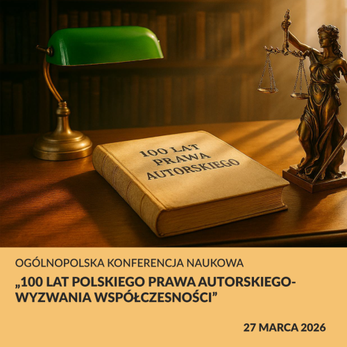 Już jutro, 27 marca 2026 roku w Warszawie odbędzie się Ogólnopolska Konferencja Naukowa „100 lat polskiego prawa autorskiego – wyzwania współczesności”.